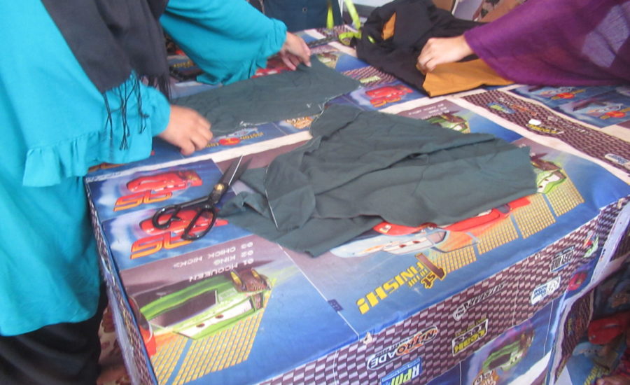 Naailessen voor vrouwen in de gevangenis, op verzoek zijn ze onherkenbaar in beeld.